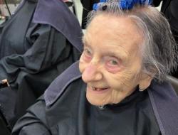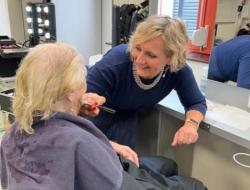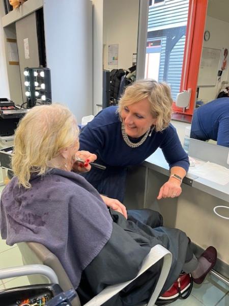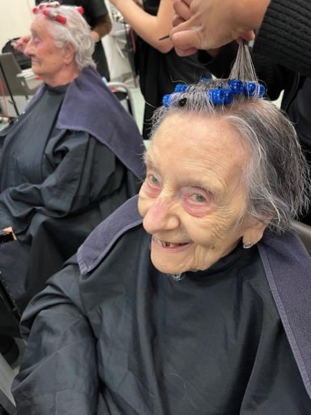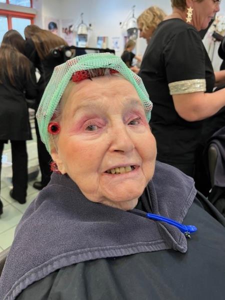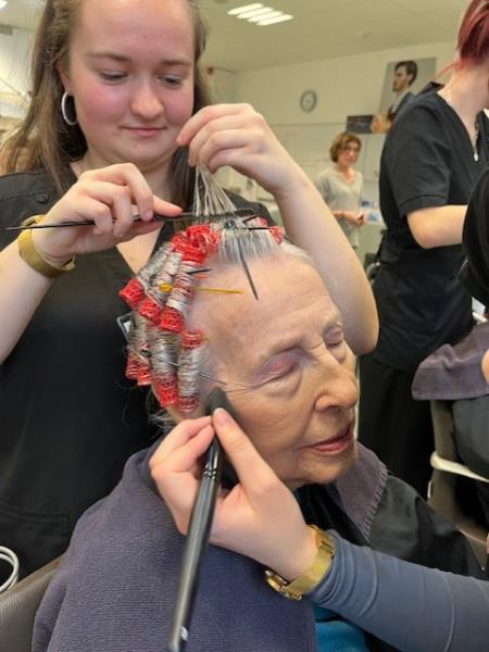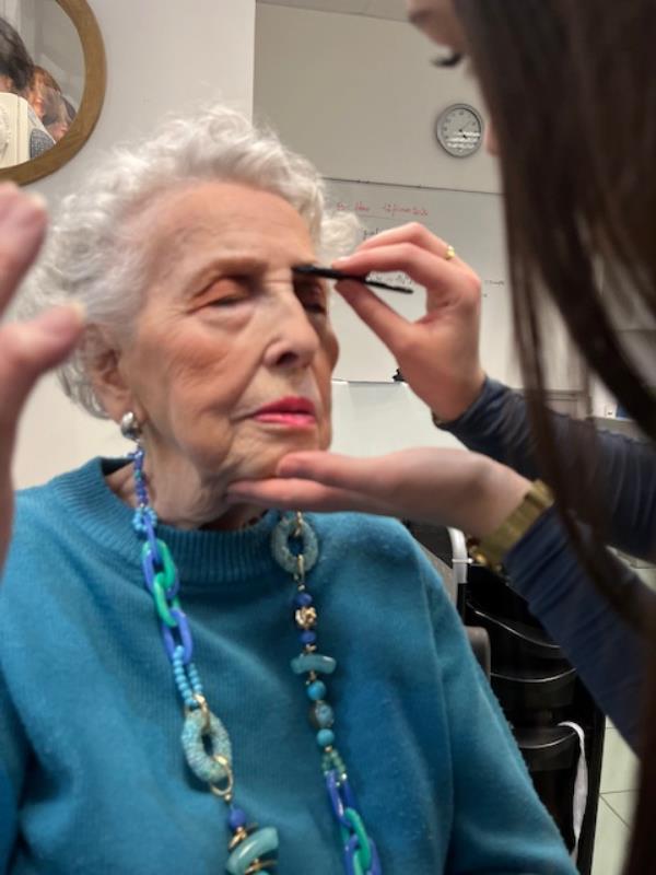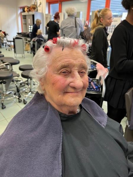 Dans une salle de classe de coiffure, je les ai maquillées avec douceur, en prenant le temps d’écouter leur histoire, d'échanger sur leur vie. 103 ans pour l’ainée Madeleine!