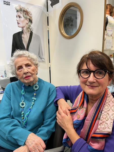 Photo : Yveline Bourdon, animatrice, aux côtés de Madame Colette L, résidente qui a été élue "Miss Résidence Tiers-Temps Rouen et Miss Départementale 2026 " dans le cadre du concours " Miss Grand-Mère 2026"
