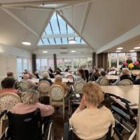 Publiée le 12/08/2025Retour en ce mois d’août, de la danse en position assise animée par Virginie RIVAT : Les personnes accueillies de l’accueil de jour s’étaient jointes au groupe de résidents. Les participants ont dansé sur des musiques aux thèmes de l’été, des vacances, du voyage et le tout en [...] Lire la suite